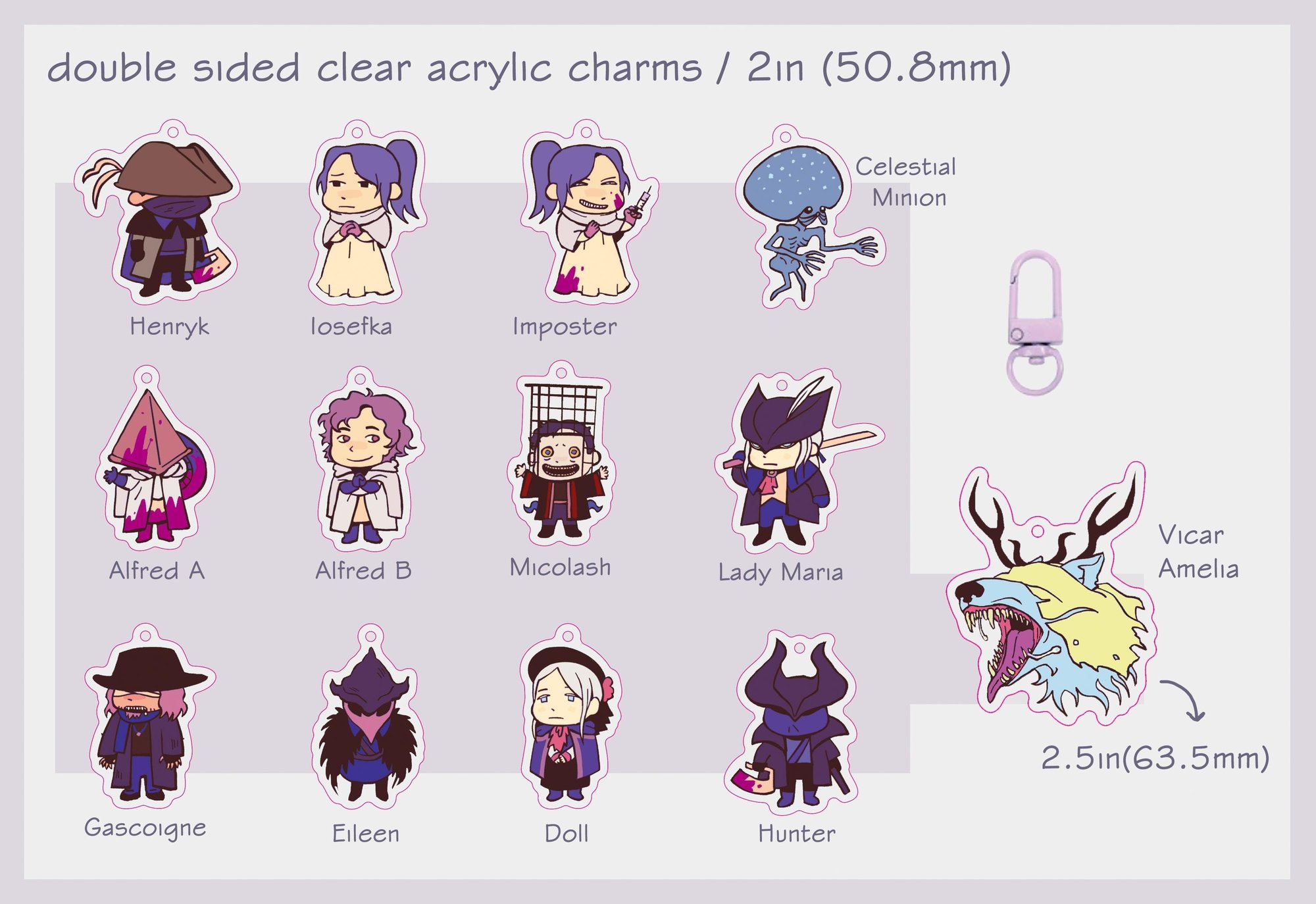 Size: 2 inches/50.8mm for all of them except Vicar Amelia, who is 2.5 inches/63.5mm