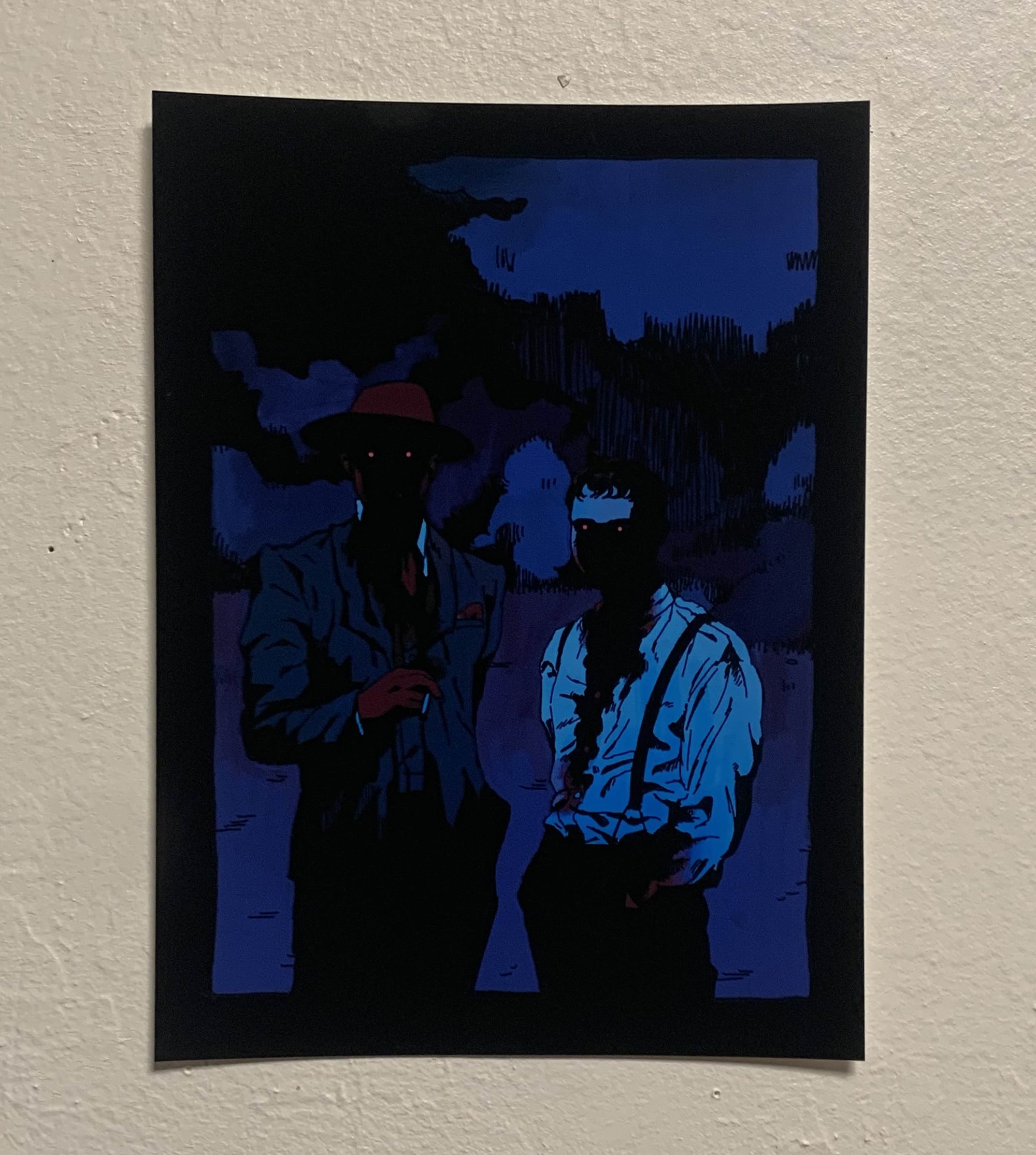 About 7" x 9". Hand cut and printed on matte photo paper.